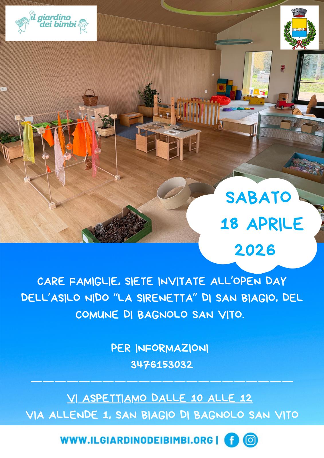 Sabato 18 aprile 2026 il Nido La Sirenetta di San Biagio apre le porte il occasione dell'Open Day.